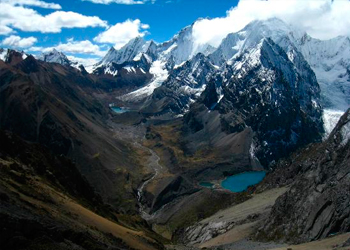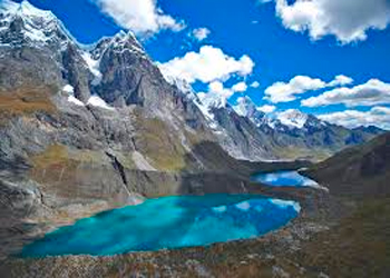 la Cordillera Huayhuash es una cadena de montañas nevadas, teniendo como punto más alto al nevado Yerupajá (6634m), la segunda montaña más alta del Perú y al famoso nevado Siulá Grande (6336m), escenario de la historia de supervivencia de Joe Simpson, “Tocando el vacío”.